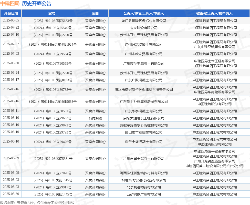 本站消息,根据天眼查APP显示,近日公布了一则中国建筑第四工程局有限公司作为被告/被上诉人的开庭公告,详细内容如下: